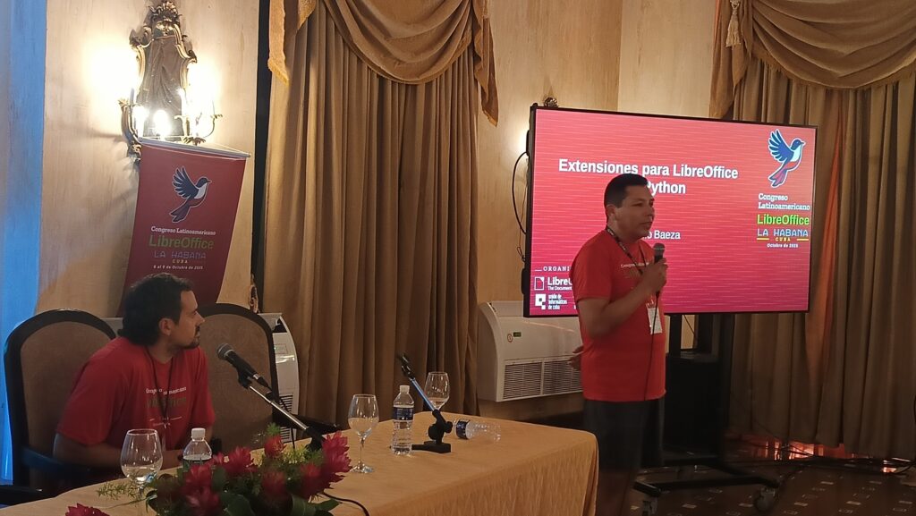 It was also the moment to personally meet Professor Joaquín Pina, from the UIC of Havana. Professor Pina will be the focal point of contact for the Cuban community. On the initiative of Pina, Hanoi Calvo and Liber Luis González, an online group was formed with students and professionals linked to the UIC. This working group will aim to study and develop extensions for LibreOffice, with possible results for the next FLISOL, the most important decentralized Free Software event in Latin America, in April 2026.