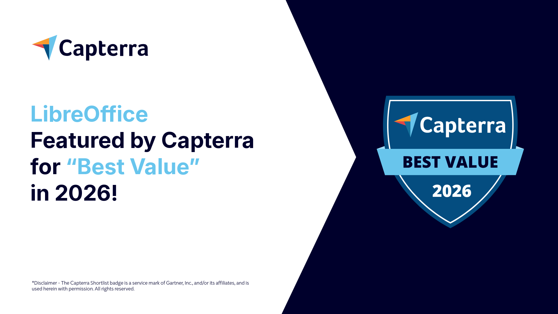 We are incredibly proud to share that LibreOffice has been officially recognized as a leader in value for 2026 by Capterra. As the digital landscape becomes increasingly defined by subscription models and rising costs, this recognition reinforces our mission to provide a powerful, professional-grade office suite that remains accessible to everyone, everywhere.